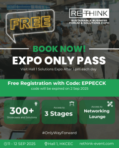 Don’t miss out on this limited time offer of a complimentary Expo Only Pass for HK’s biggest showcase of products, services and solutions for sustainable business! Sign up for a complimentary pass and explore the ReThink HK Solutions Showcase Expo after 1pm on each day of the event.*