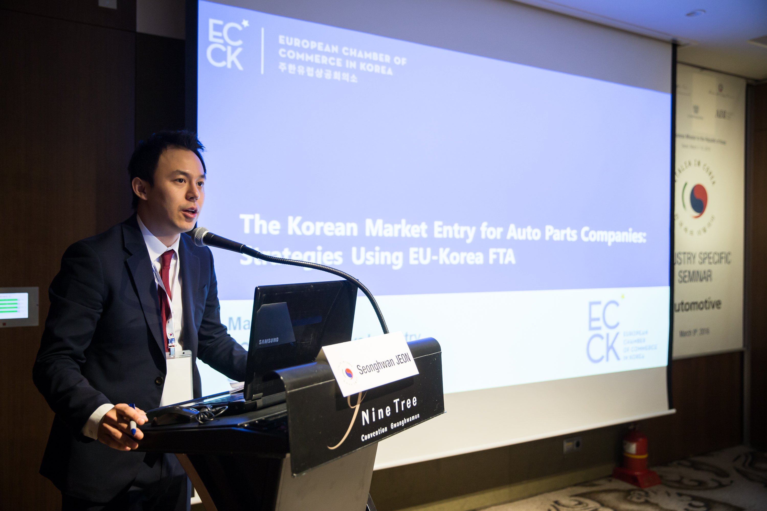 During the Delegation’s Automotive Sector Seminar, Seonghwan Jeon, Head of ECCK Automotive Industry, conducted a presentation on “The Korean Market Entry for Auto Parts Companies: Strategies Using EU-Korea FTA” to the automotive industry sector of the Italian Business Delegation.