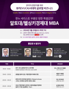 aSSIST(a Seoul School of Integrated Sciences & Technologies, President Moon, Hwy Chang) will hold the INFO SESSION of ‘Aalto Executive MBA(former Helsinki School of Economics) in Seoul’ for the Fall semester of 2024 at the Finland Tower(Gangbuk Campus, Seoul) on May 29th.