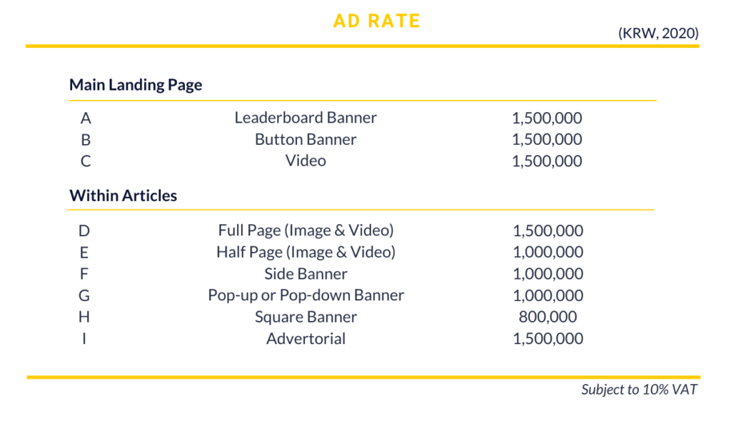 As the magazine is widely circulated within the major business communities in Korea, don’t miss out this exclusive opportunity to expose your business to the prominent business community in Korea!