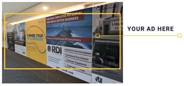 As all external meetings are held in our Visitors Lounge, the AD will provide an excellent opportunity to expose your business. The AD contents can be flexible – logo, products or services – and can be reserved & renewed on a yearly basis. Reservation opens every year in December and installation finishes by the end of January.