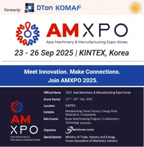 KOAMI Informa Markets Co., Ltd. invites parties interested in Korea’s machinery and manufacturing industry or searching for a new business platform to the Asia Machinery & Manufacturing Industry Expo (AMXPO), in regard to the former Korea Machinery Fair and Korea Industry Fair. AMXPO focuses on the machinery industry across variety of fields, such as metalworking, smart factories, energy plants and materials & components.