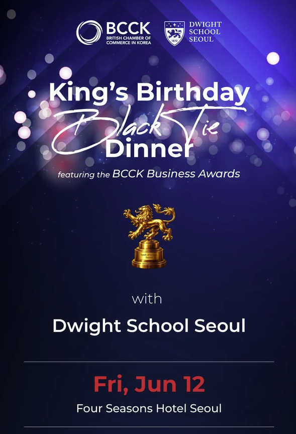 To register and for more information, please visit 2026 BCCK King’s Birthday Dinner with Dwight School Seoul | British Chamber of Commerce in Korea.