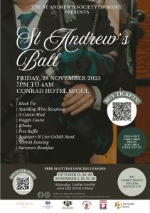 The St Andrew’s Ball 2025 will be held on Friday, 28th November at the Conrad Hotel, Seoul. The Ball is one of the highlight of the Seoul social calendar, and this year promises to be no exception.