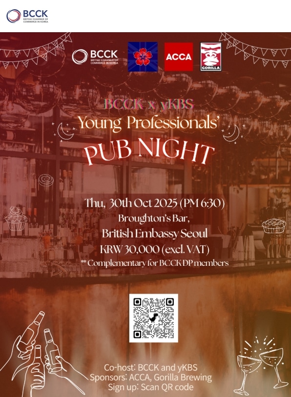 Co-hosted by the British Chamber of Commerce in Korea (BCCK) and Young Korean British Society (yKBS), this event brings together young professionals across industries to exchange ideas, build networks, and enjoy a relaxed social atmosphere.