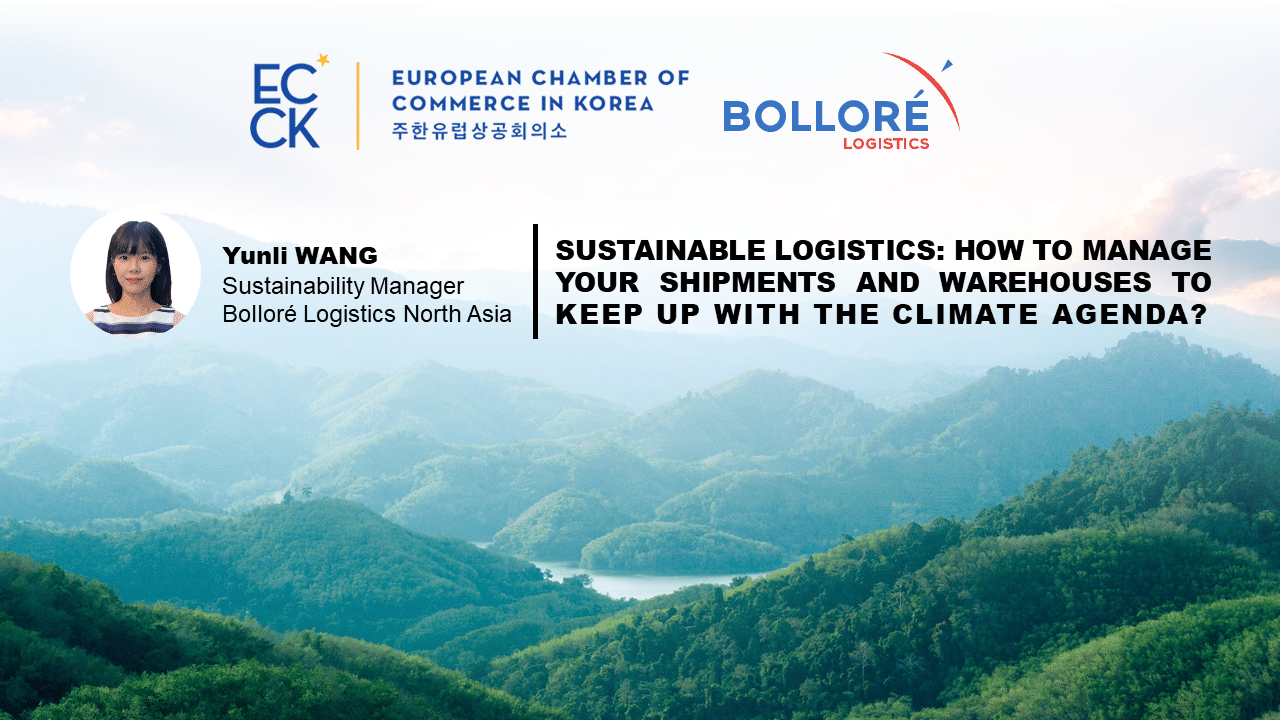 Bolloré Logistics Korea and the European Chamber of Commerce in Korea (ECCK) recently collaborated to organize a live webinar on the topic: Sustainable Logistics: How to manage your shipments and warehouses to keep up with the climate agenda?