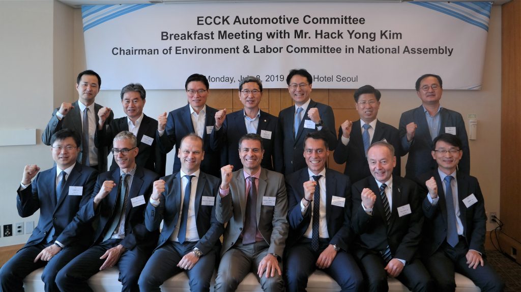 On July 8, ECCK Automotive Committee hosted a breakfast meeting with Chairman of Environment and Labor Committee of National Assembly Hack Yong Kim at Lotte Hotel Seoul.