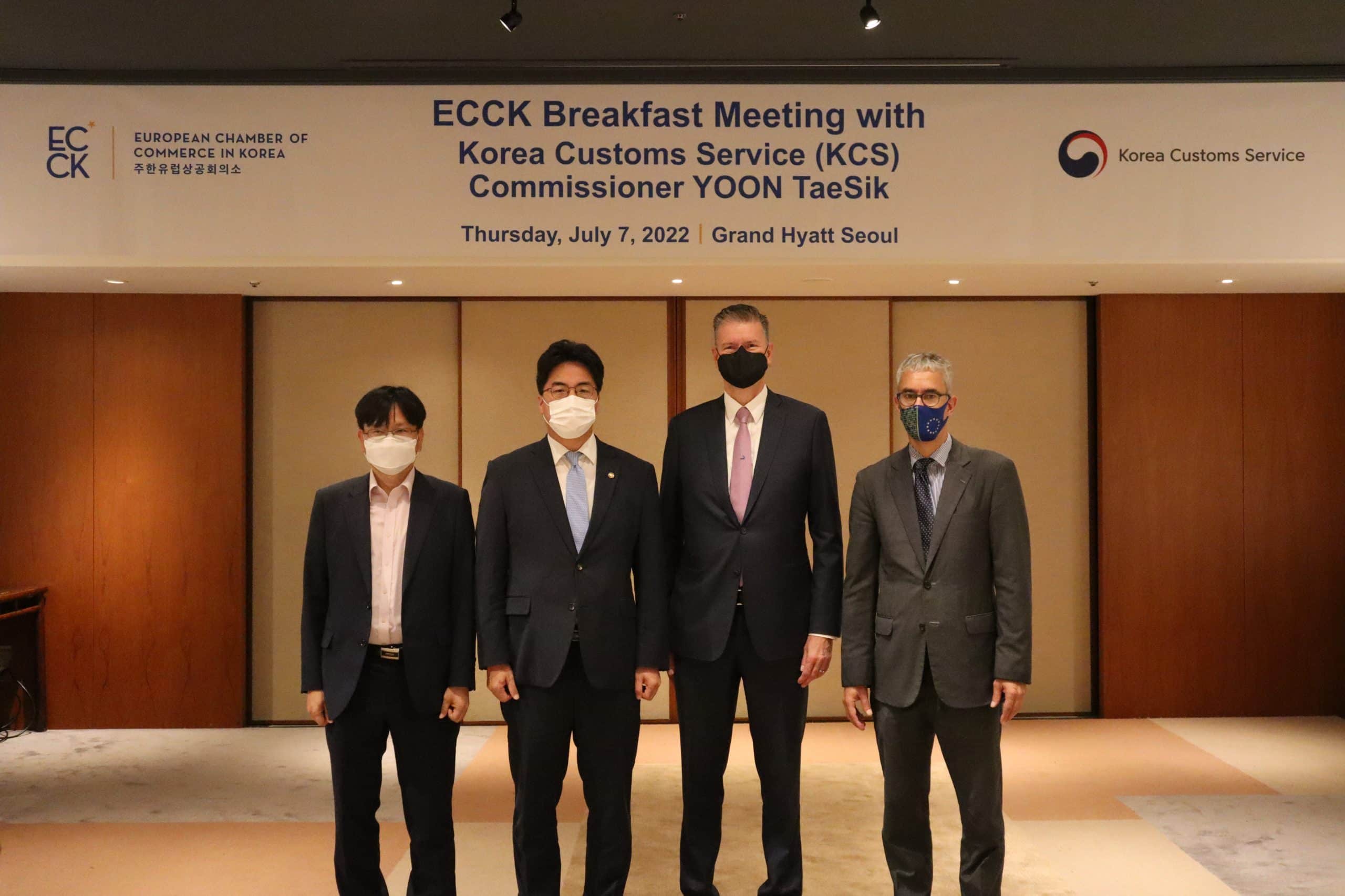 On July 7, 2022, the ECCK held a breakfast meeting with Yoon TaeSik, Commissioner of the Korea Customs Service (KCS) at Grand Hyatt Seoul with representatives from ECCK members in attendance.