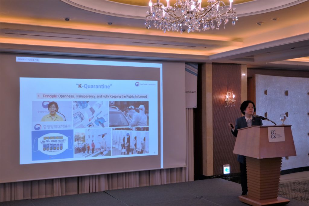 The event opened with welcoming remarks by Vice Chairperson Lukat. “In order for the Korean economy to smoothly recover from this period of uncertainties at home and abroad and continue to grow, a fair and vibrant market ecosystem must be the basis, and the power to overcome the crisis comes from the value of fairness and win-win cooperation”, he remarked. “In a time of tough challenges and risks, both government and business must focus on fulfilling its own responsibilities, offering long-term solutions to real problems, building trust and confidence.”