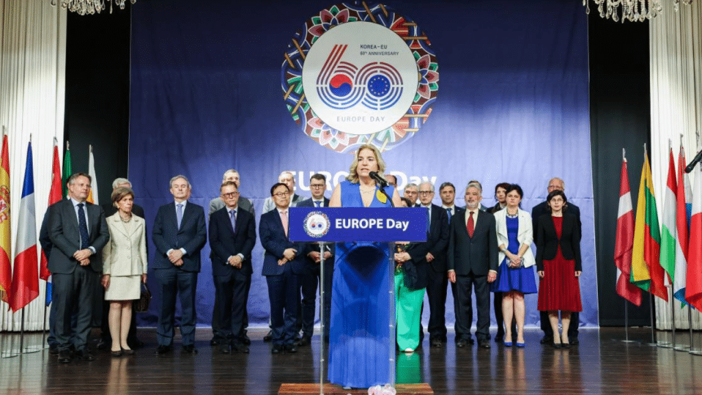 Europe Day is an annual celebration of peace and unity in Europe. Over 400 VIPs from Government and State institutions, Business, Civil Society as well as from Embassies and Diplomatic Missions attended the most recent edition in 2023 in Seoul to celebrate Europe and its fruitful relations with the Republic of Korea.