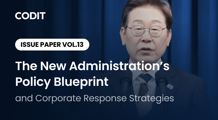 To read this issue paper in more detail, please visit here: [Issue Paper [Vol.13] The New Administration’s Policy Blueprintand Corporate Response Strategies in English and [이슈페이퍼 Vol.13] 신정부 국정과제 수립과 기업의 정책 대응 전략 in Korean.