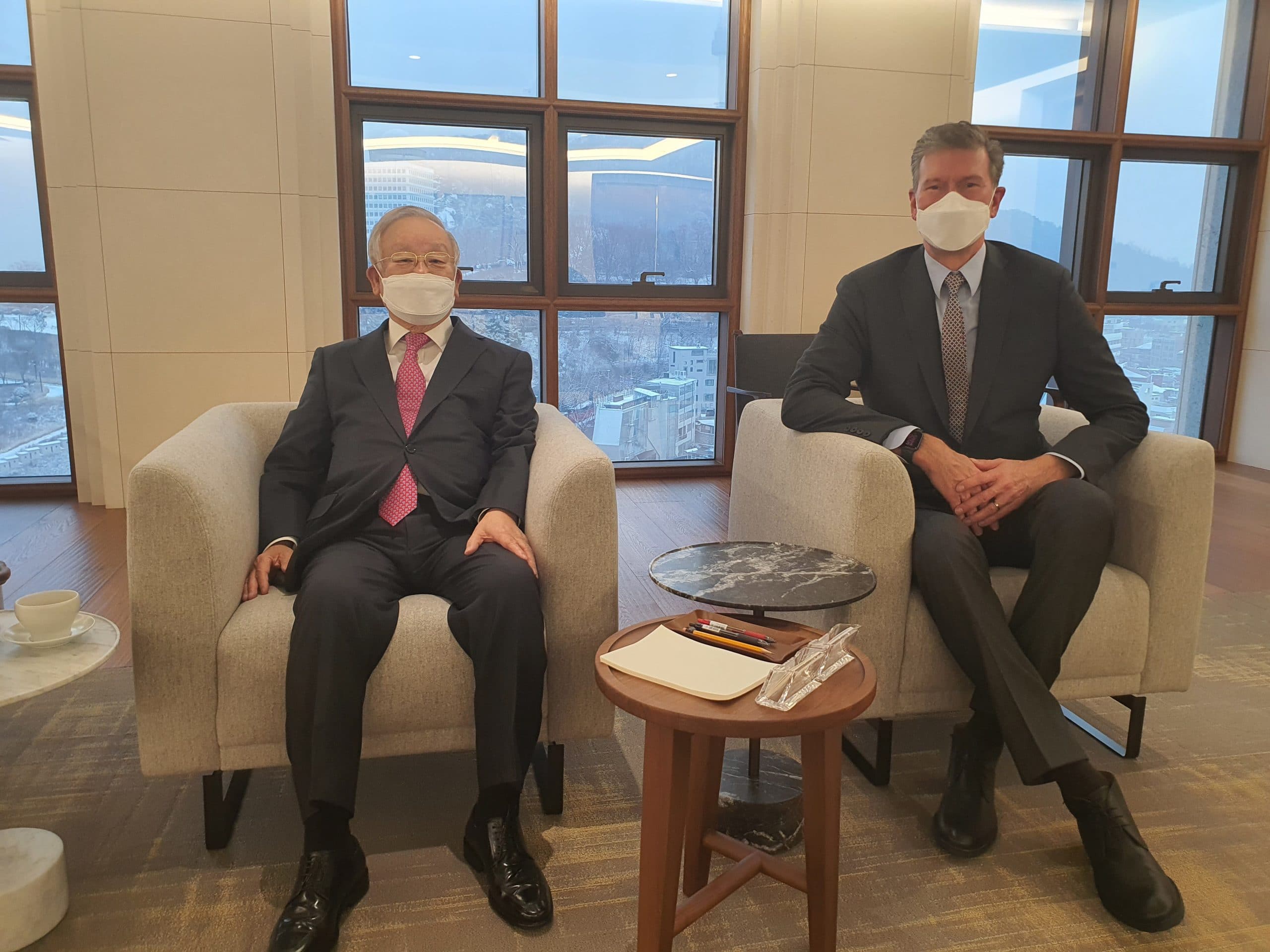 On January 19, 2022, ECCK Chairperson Dirk Lukat and President Christoph Heider paid a courtesy visit to KEF (Korea Enterprises Federation) / CJ Group Chairman, Sohn Kyung Shik.