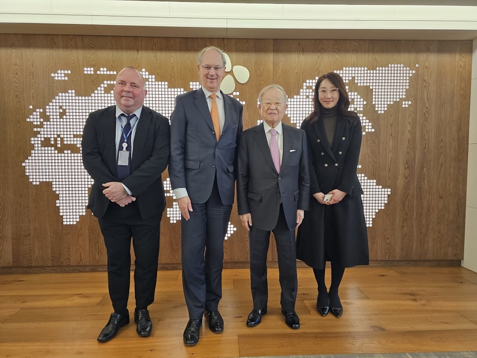 On January 15, ECCK Chairperson Philippe Van Hoof and President Stefan Ernst paid a courtesy visit to KEF (Korea Enterprises Federation) Chairman Sohn Kyung Shik. During the meeting, they shared opinions on the business outlook for 2024 and international circumstances in various industry fields including financial sector affecting business and FDIs. Also they discussed about regulatory issues including labour reform such as 52 hour work week system, labour union issue, etc. They agreed to further enhance cooperation between the two organizations.