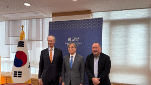 On August 22, ECCK Chairperson Philippe van Hoof, President Stefan Ernst, and Vice President Bo Sun Kim paid a courtesy visit to Ministry of Foreign Affairs(MOFA) Deputy Minister for Economic Affairs Kim Hee-sang.