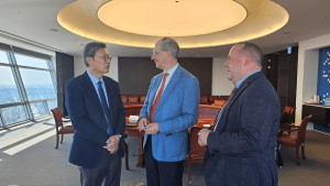 On May 10, ECCK Chairperson Philippe Van Hoof and President Stefan Ernst paid a courtesy visit to the FKI (Federation of Korean Industries) Vice Chairman & CEO Chang Beom Kim. They shared their opinions on the importance of harmonizing local regulations with international standards.