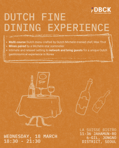 Intimate and relaxed setting to network and bring guests for a unique Dutch gastronomical experience in Korea