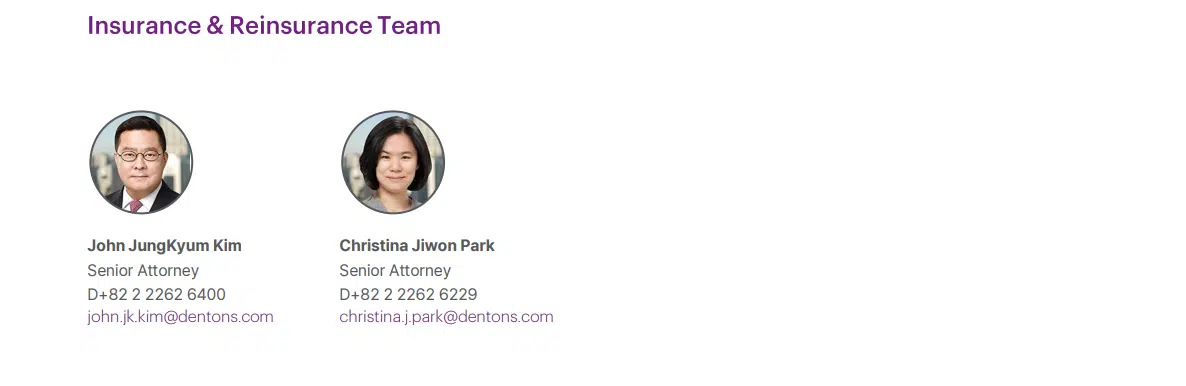 [Dentons Lee] Insurance & Reinsurance and International Experts John JungKyum Kim & Christina Jiwon Park have joined Dentons Lee in Seoul