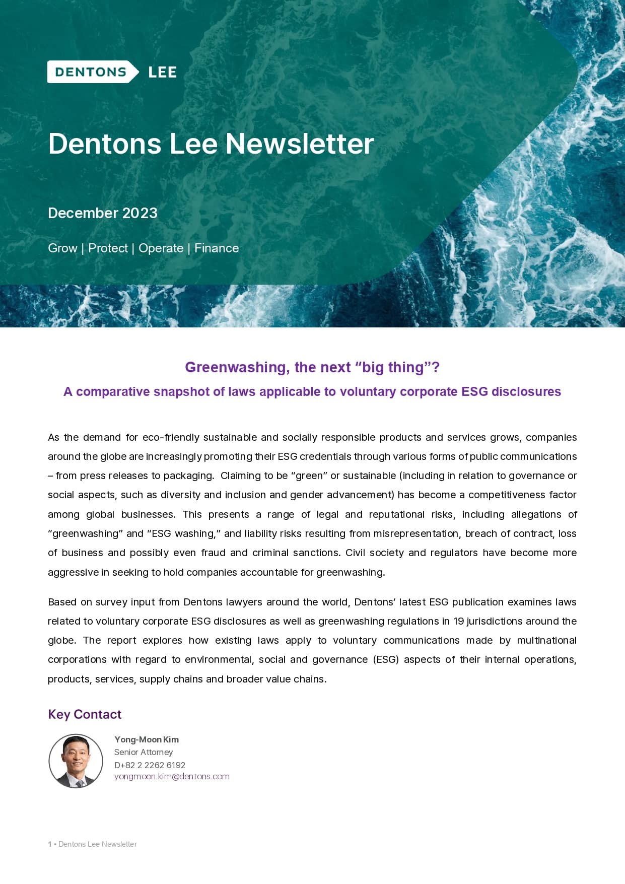 Dentons Lee Published a Newsletter on ESG