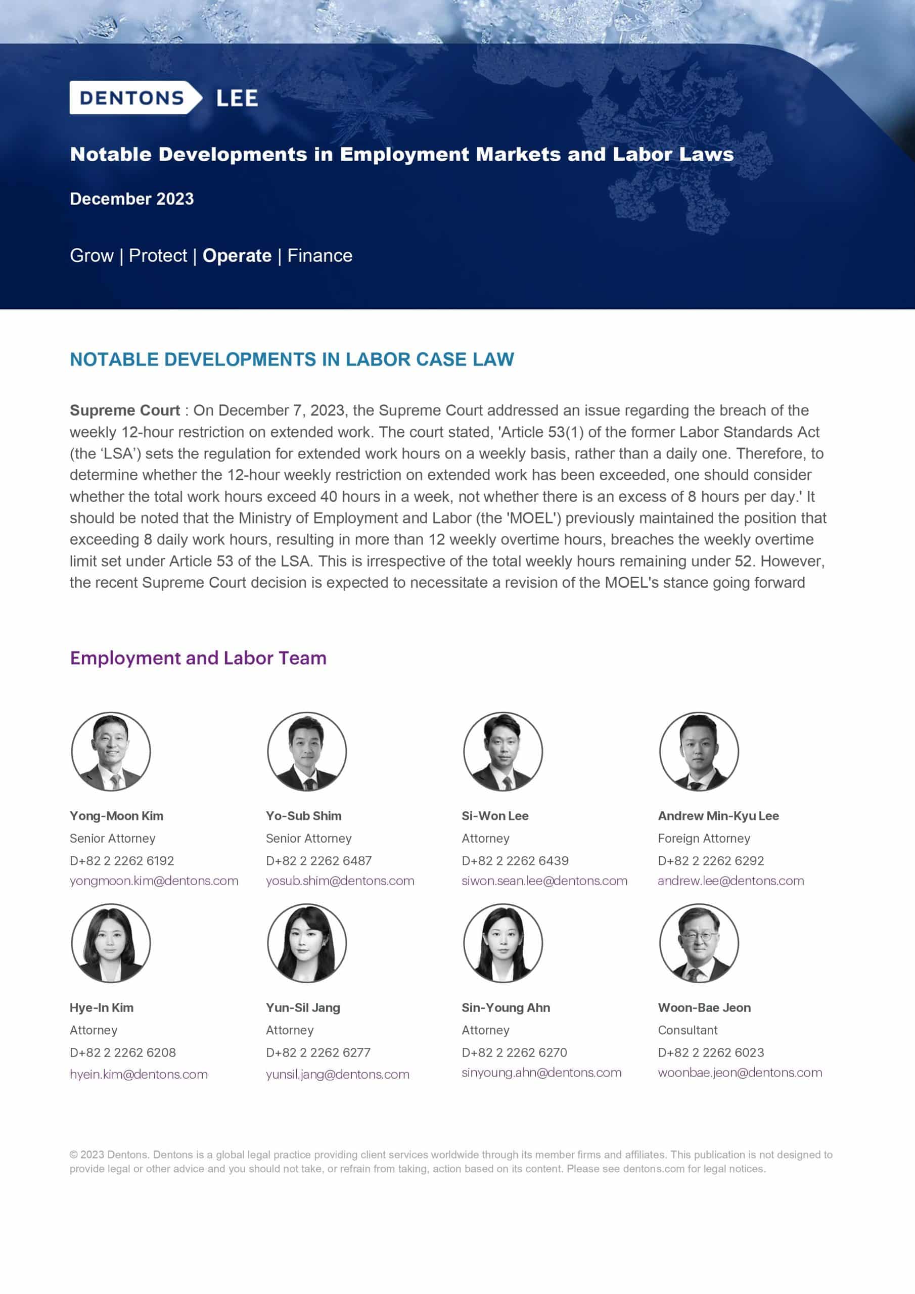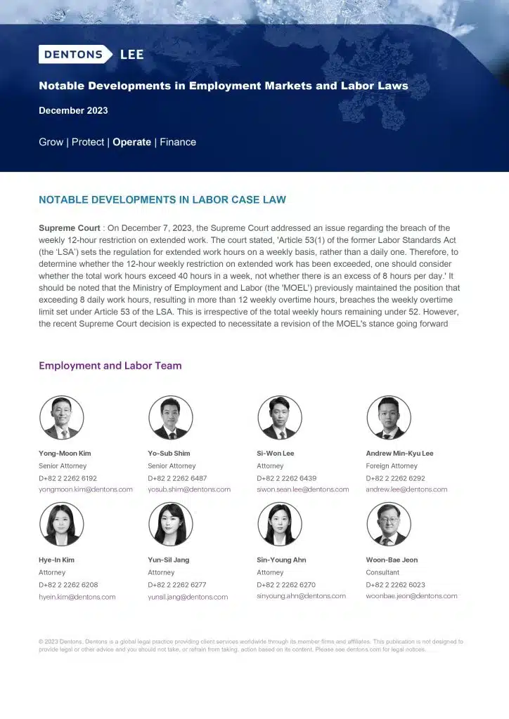 Dentons Lee published a Newsletter on Employment Markets and Labour Laws