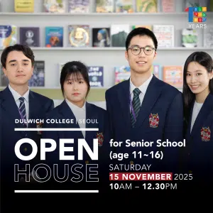 Dulwich College Seoul, Seoul’s top IB school, invites families with children aged 11 to 16 to join their Senior School Open House on Saturday, 15 November 2025, from 10:00 AM to 12:30 PM. This event offers the opportunity to meet the Head of College and Senior School leadership team, tour the Dulwich facilities, and discover how students are being prepared to thrive academically and personally through the IB Diploma Programme, building the skills and confidence to succeed at leading universities worldwide.
