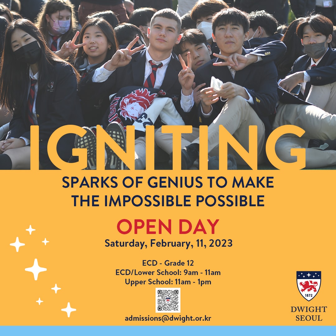 Come join us to discover the unique qualities that make Dwight Seoul a special place of learning. Meet our faculty members, speak with our current students, take a tour, and learn about our new library that will be opening soon. Discover how each and every child has a unique learning experience at Dwight Seoul. Register here today.