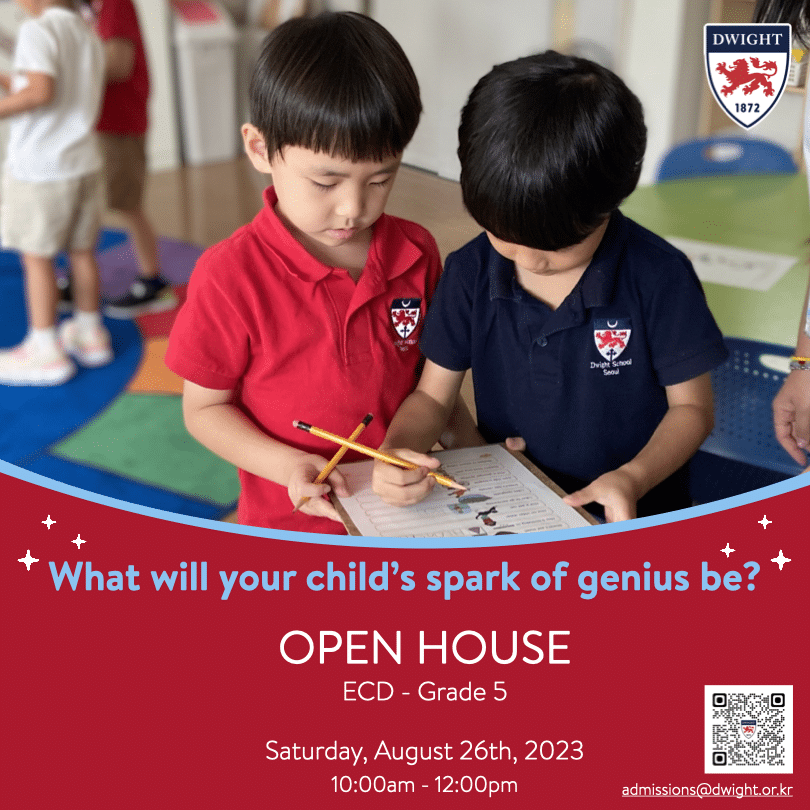 Dwight Seoul invites families to attend its Lower School Open House to learn more about the IB PYP curriculum offered at Dwight Seoul. Parents and children will have the opportunity to meet with the Principal and teachers in our Early Childhood Division and Grades 1- 5 who can share details about Dwight’s IB Programme and our commitment to each student’s educational journey benchmarked by our three pillars, personalized learning, community and global vision.