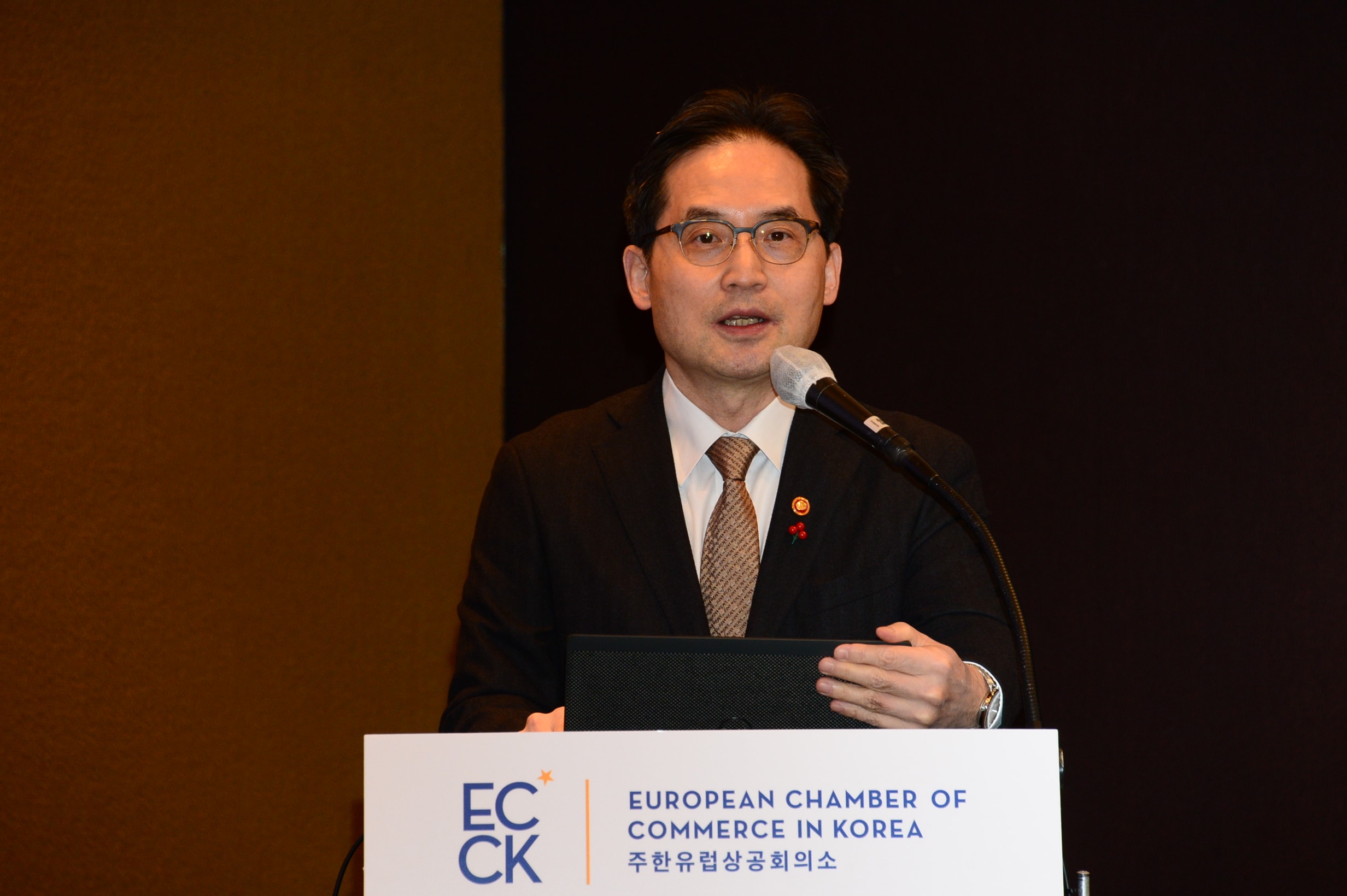 Following welcoming remarks by ECCK Chairperson Dirk Lukat, keynote speech was delivered by KFTC Chairperson Han Ki Jeong where he shared his valuable insights and views on Korean Fair Trade Policy Direction.