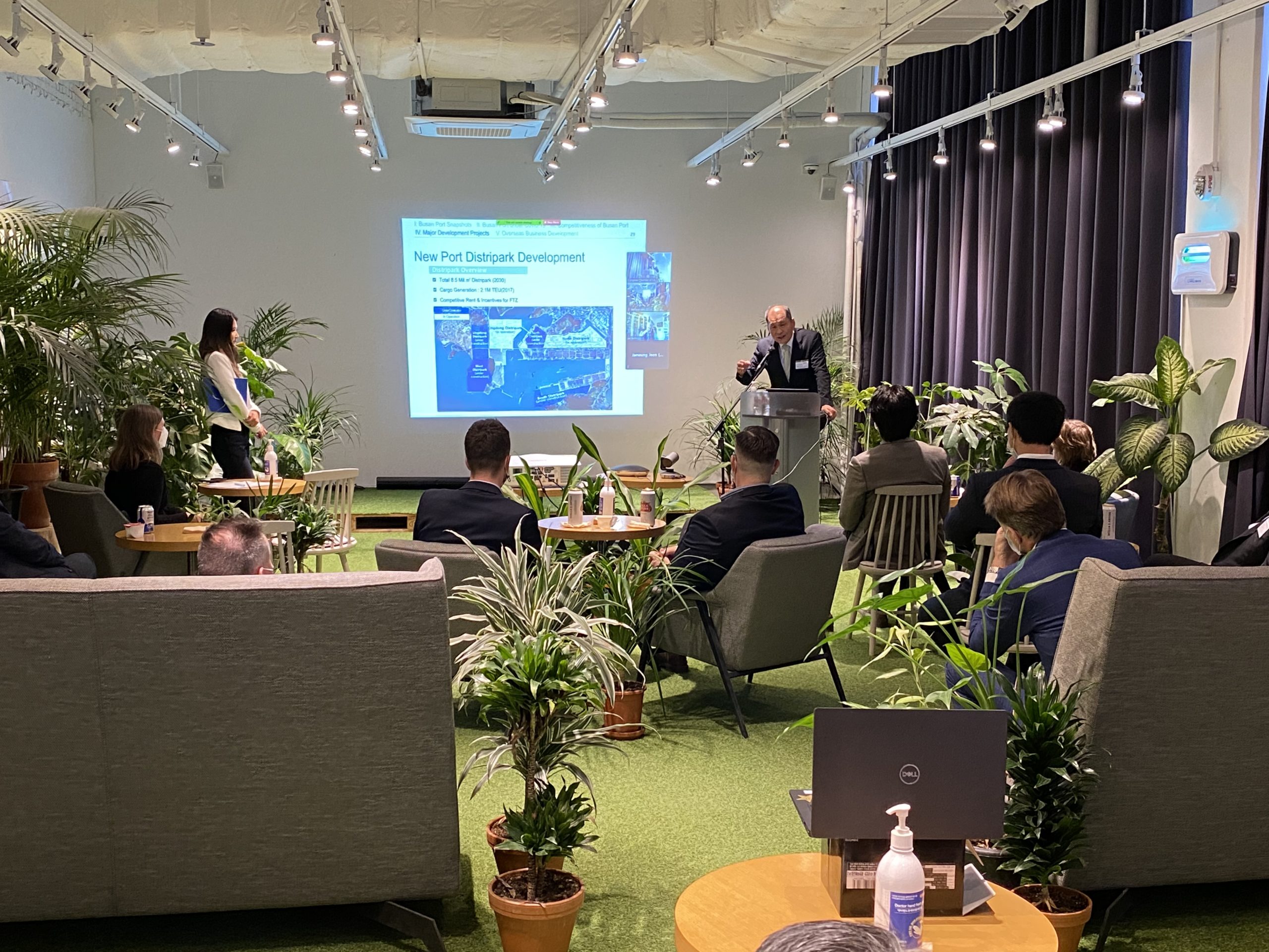 For the first session of the event, a seminar/webinar at an international and national level in the maritime and logistics industry was prepared. Dr. Jan Hoffmann from the United Nations Conference on Trade and Development (UNCTAD) shared with the attendees “the shipping through the pandemic & Korean maritime profile” from Switzerland. Dr. Ho-Chul Park from the Busan Port Authority (BPA) delivered his insights on “Busan Port Now & Vision for Future” at the venue. This interesting first session ended with a Q&A session between the attendees and the speakers which was followed by a networking session for the physical attendees.