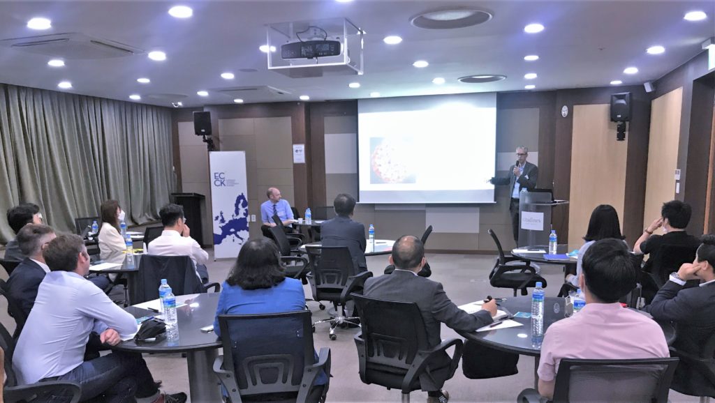 On June 18, the ECCK Busan Chapter held an information session on the ‘Economic Oulook 2020’ with its member companies. During the event, ECCK President Christoph Heider and Mr. Andrew Millard, an assistant professor of Busan University of Foreigner Studies, briefed on the global and local economic effects of COVID-19 pandemic. The session was continued with and open discussion of the key lessons and the expected outlook for Korean and European economies.