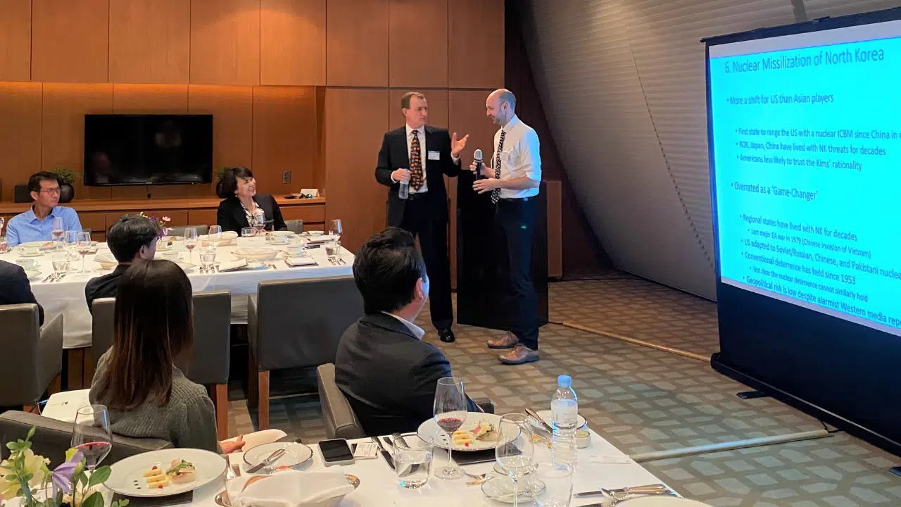 During the session, Dr. Kelly covered six macro-trends with strategic implications for business in Northeast Asia: 1) Economic: the Rise of China, 2) Economic: Indian Growth, 3) Economic: the Stagnation of Japan, 4) Demographic: the Region-Wide Collapse of Birth Rates, 5) Political: Biden’s Presidency, Brexit, 6) Military: North Korea’s Nuclear Missilization.