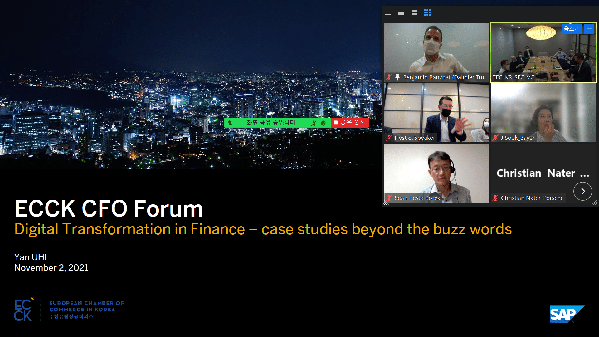 The session was presented by two speakers Yan Uhl, CFO Korea and Representative Director of SAP and Torsten Berger, CFO & Vice President at Vitesco Technologies Korea, where they shared their first-hand experience and valuable insight with Digital Finance Transformation.