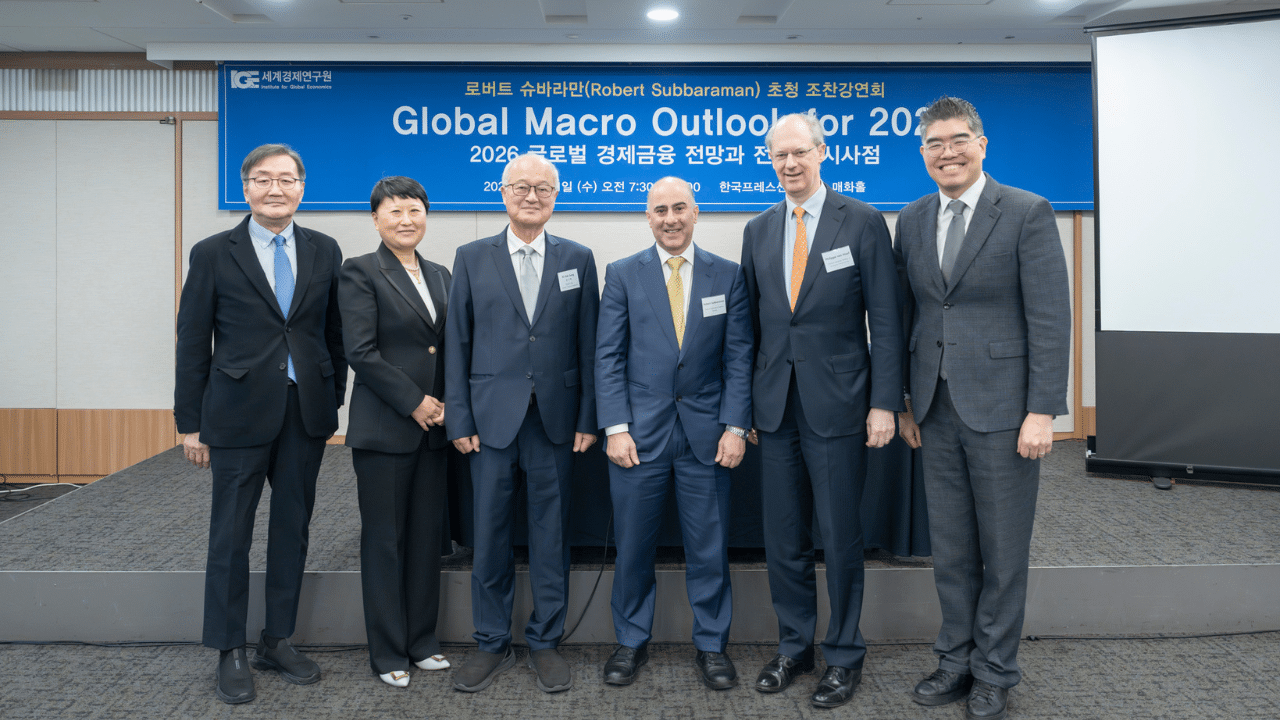 The forum featured Robert Subbaraman, Chief Economist and Head of Global Markets Research for Asia (ex-Japan) at Nomura Group, who delivered a keynote presentation titled “Global Macro Outlook for 2026.” Widely regarded as a leading authority on global and Asian macroeconomics, Mr. Subbaraman provided an in-depth assessment of the economic outlook for 2026, with a particular focus on Asia and Korea.