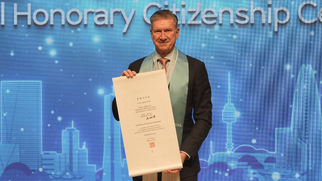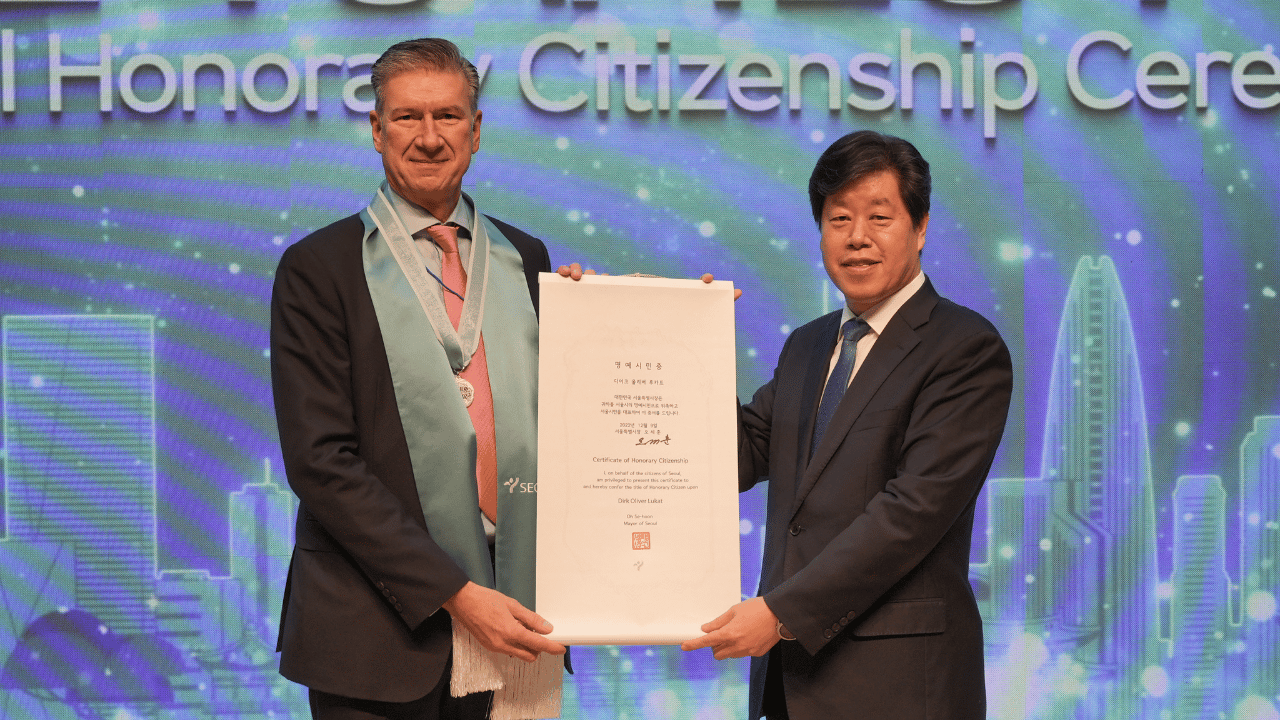 On December 9, ECCK Chairperson Dirk Lukat was recognized as an honorary citizen of Seoul. At the 2022 Seoul Honorary Citizenship Ceremony, in recognition of his leadership and contribution to attracting foreign investment and stimulating business exchanges, Chairperson Lukat became an honorary citizen together with 17 foreign residents that have contributed greatly to the city.