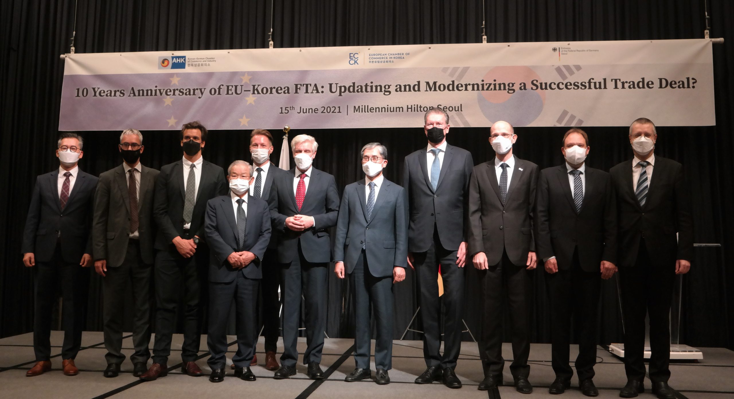 The Korean-German Chamber of Commerce and Industry (KGCCI), the German Embassy in Korea and the European Chamber of Commerce in Korea (ECCK) successfully held a hybrid event to celebrate the 10th anniversary of the implementation of the EU-Korea Free Trade Agreement (EU-KOR FTA).