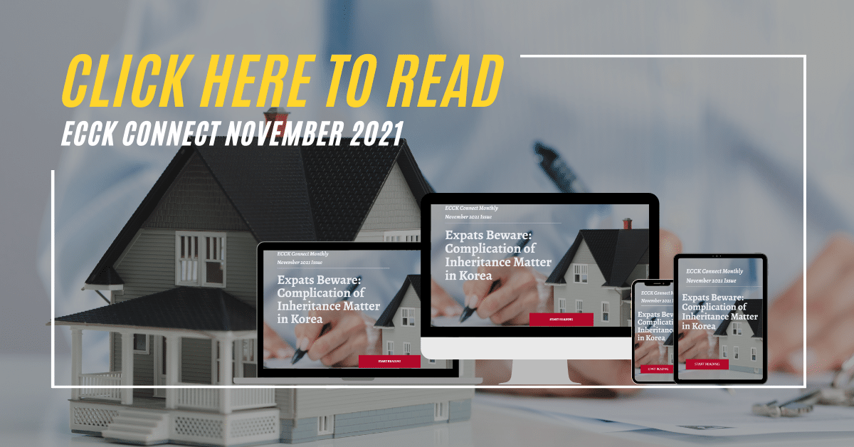 Including a feature article on inheritance issues of foreign residents, contributed by one of ECCK members Yulchon LLC, we have prepared informative and interesting articles for your reading pleasure for November.