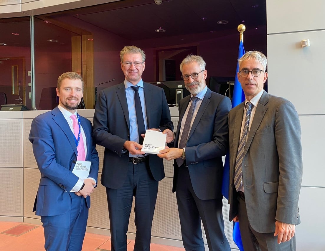 In September, ECCK White Paper 2022 was published and ECCK has been holding meetings with the Korean authorities to brief some of the industry-related issues and recommendations included in this year’s White Paper followed by the Press Conference, where ECCK shared the key messages with the public and ECCK members. To further this effort, this time the ECCK flied to Europe from October 10 to October 14 to brief the European stakeholders about the business environment in Korea. The ECCK’s delegation to Europe consisted of Chairperson Dirk Lukat, Trustee of the Board Johan Vandromme, President Christoph Heider as well as Committee Heads from the ECCK Secretariat.