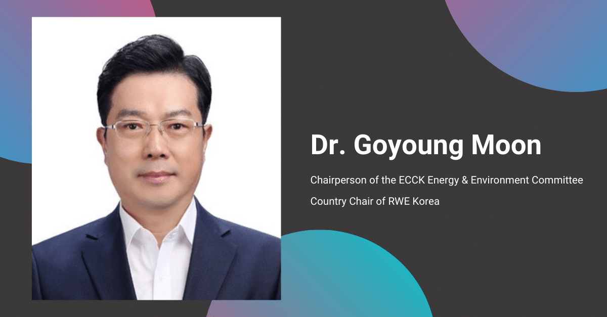 The ECCK is pleased to announce that, Dr. Goyoung Moon, Country Chair of RWE Korea has been elected as the Chairperson of the ECCK Energy and Environment Committee. Dr. Moon will serve a two-year term as the Committee Chairperson from February 15, 2022 to February 14, 2024.