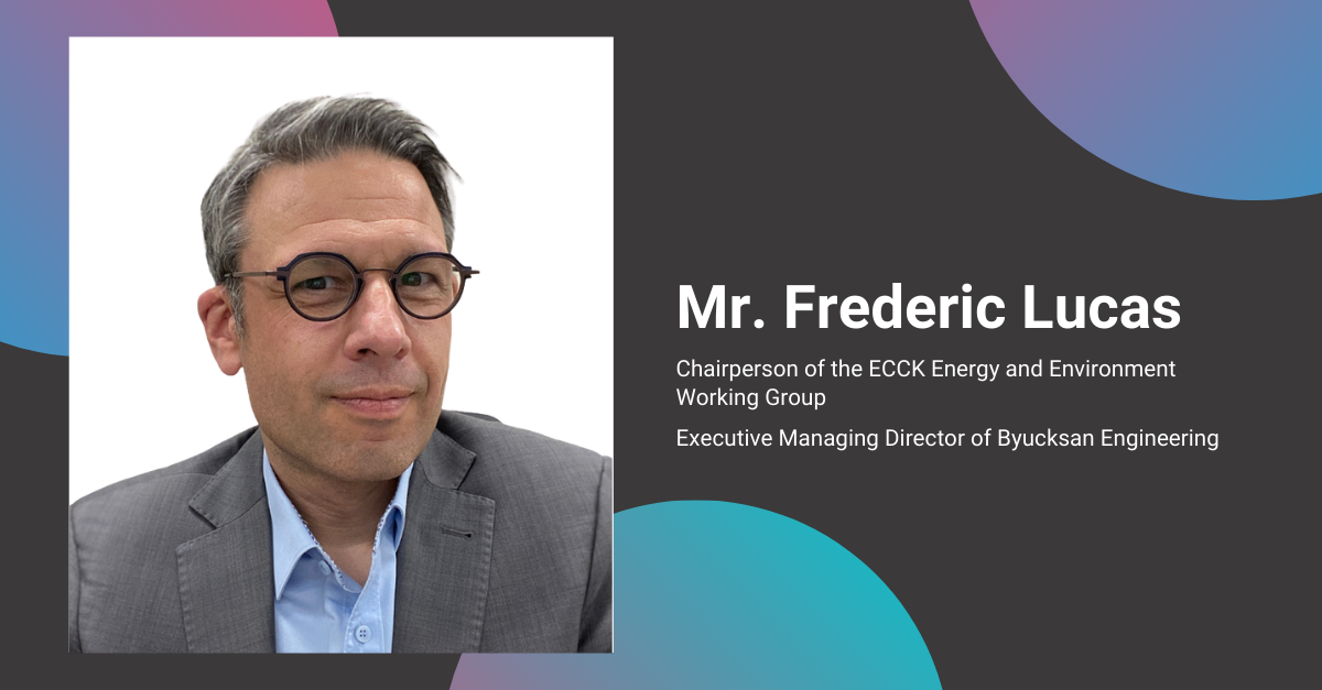 The ECCK is pleased to announce that, Mr. Frederic Lucas, Executive Managing Director of Byucksan Engineering has been re-elected as the Chairperson of the ECCK Energy and Environment Working Group.