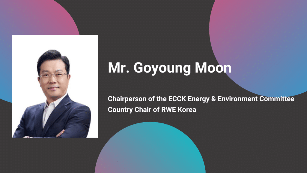 ECCK is pleased to announce that, Dr. Goyoung Moon, Country Chair of RWE Korea has been re-elected as the Chairperson of the ECCK Energy and Environment Committee. Dr. Moon will serve a two-year term as the Committee Chairperson from February 16, 2024 to February 15, 2026.