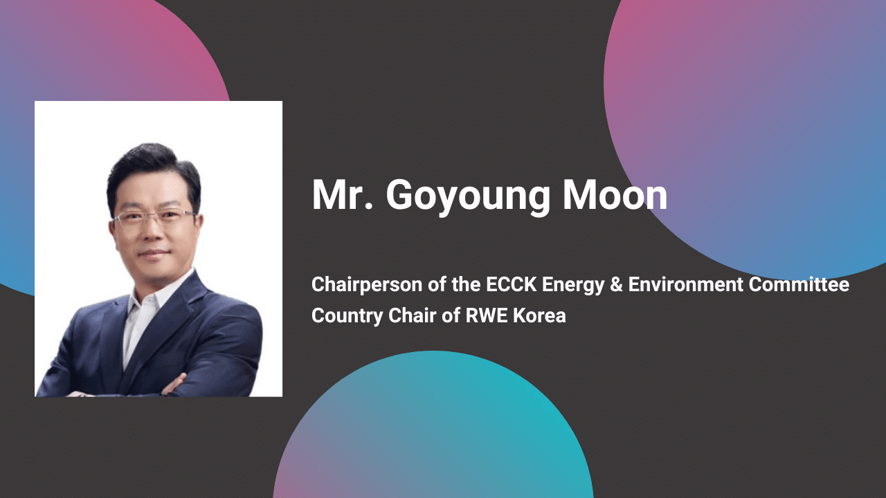 ECCK is pleased to announce that, Dr. Goyoung Moon, Country Chair of RWE Korea has beenre-elected as the Chairperson of the ECCK Energy and Environment Committee. Dr. Moon will serve a two-year term as the Committee Chairperson from February 16, 2024 to February 15, 2026.