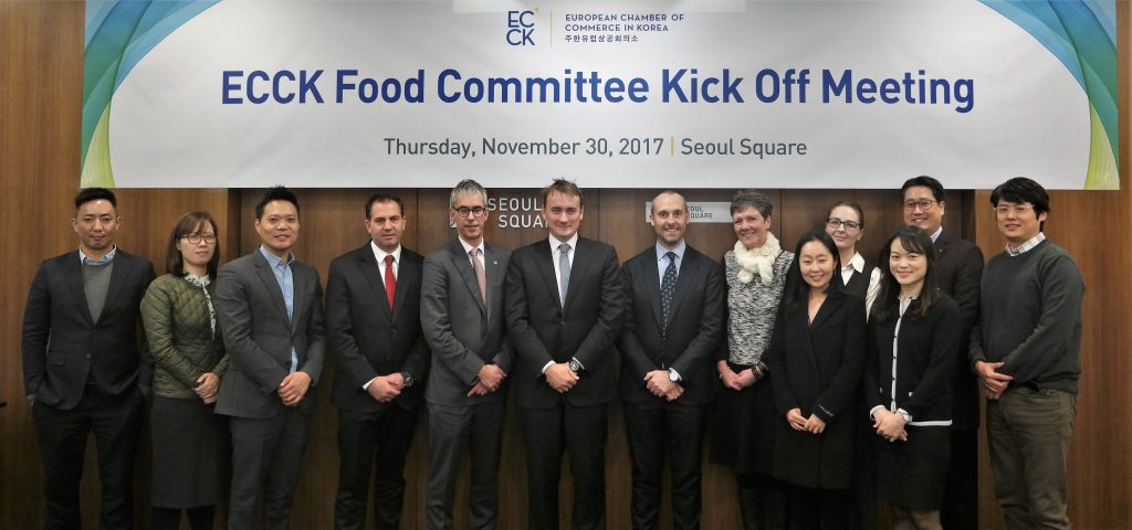 On November 30, the ECCK Food Committee had its official kick-off meeting at Seoul Square building. Established to meet the growing size and demands for its member companies in the food industry, the Committee is expected to play a critical role in representing interests of its member companies and addressing industry-specific issues to better the business environment in Korea. On the day’s meeting, Mr Erwan Vilfeu, CEO at Nestle Korea, was elected as a Chairman of the Committee. The ECCK would like to sincerely congratulate Mr Vilfeu and wish him all the success for his Chairmanship of the ECCK Food Committee for the next two years.