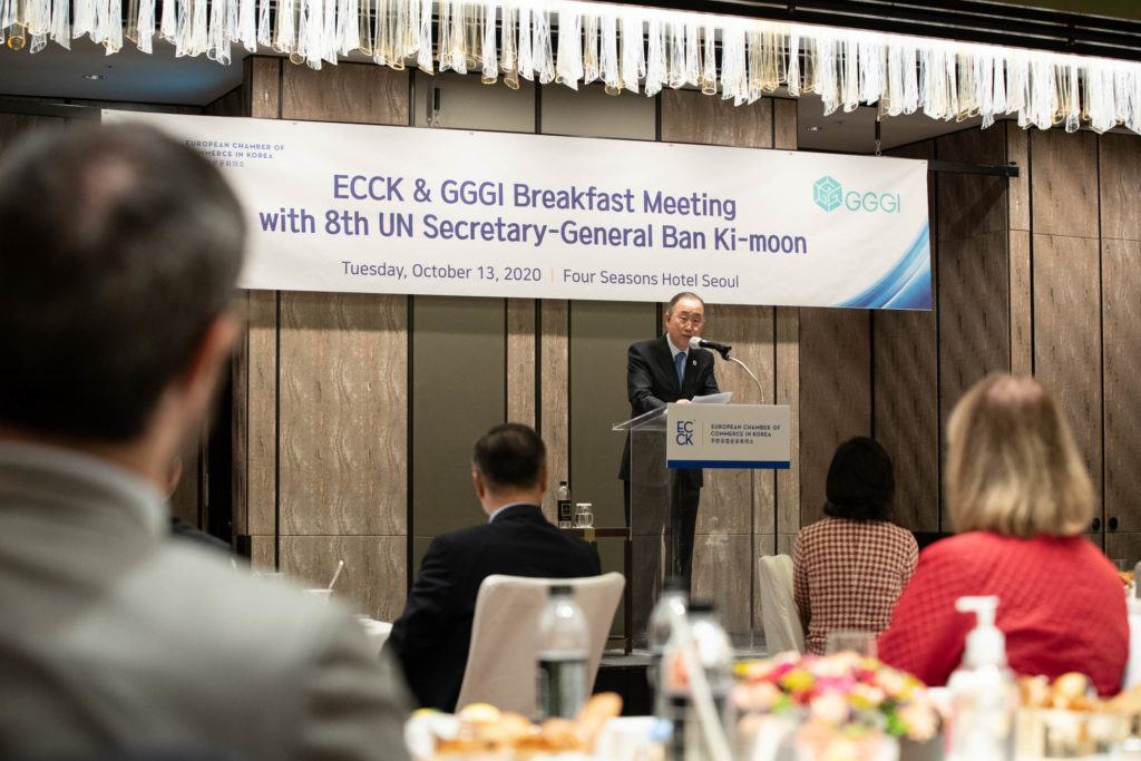 In the morning of October 13, ECCK and Global Green Growth Institute (GGGI) hosted a breakfast meeting with Mr. Ban Ki-moon, 8th UN Secretary-General and Chairman of GGGI, at Four Seasons Hotel Seoul. The participants were able to attend the meeting both physically and virtually.
