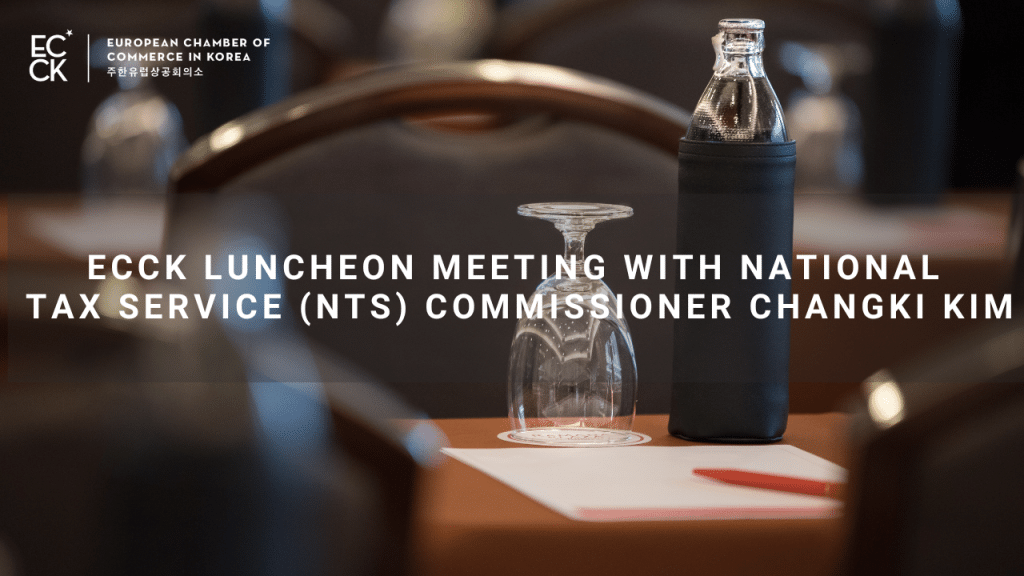 On February 27, National Tax Service (NTS) Commissioner Kim ChangKi and Deputy Commissioner for International Taxation Park Jae-Hyung had a luncheon meeting with ECCK Chairperson Philippe Van Hoof, President Stefan Ernst and Vice-President Bo Sun Kim. They shared their views on economic outlook and promised an even closer future collaboration between the two organizations. Especially Commissioner Kim expressed his willingness to listen to any tax-related grievances ECCK member companies might encounter at any time.