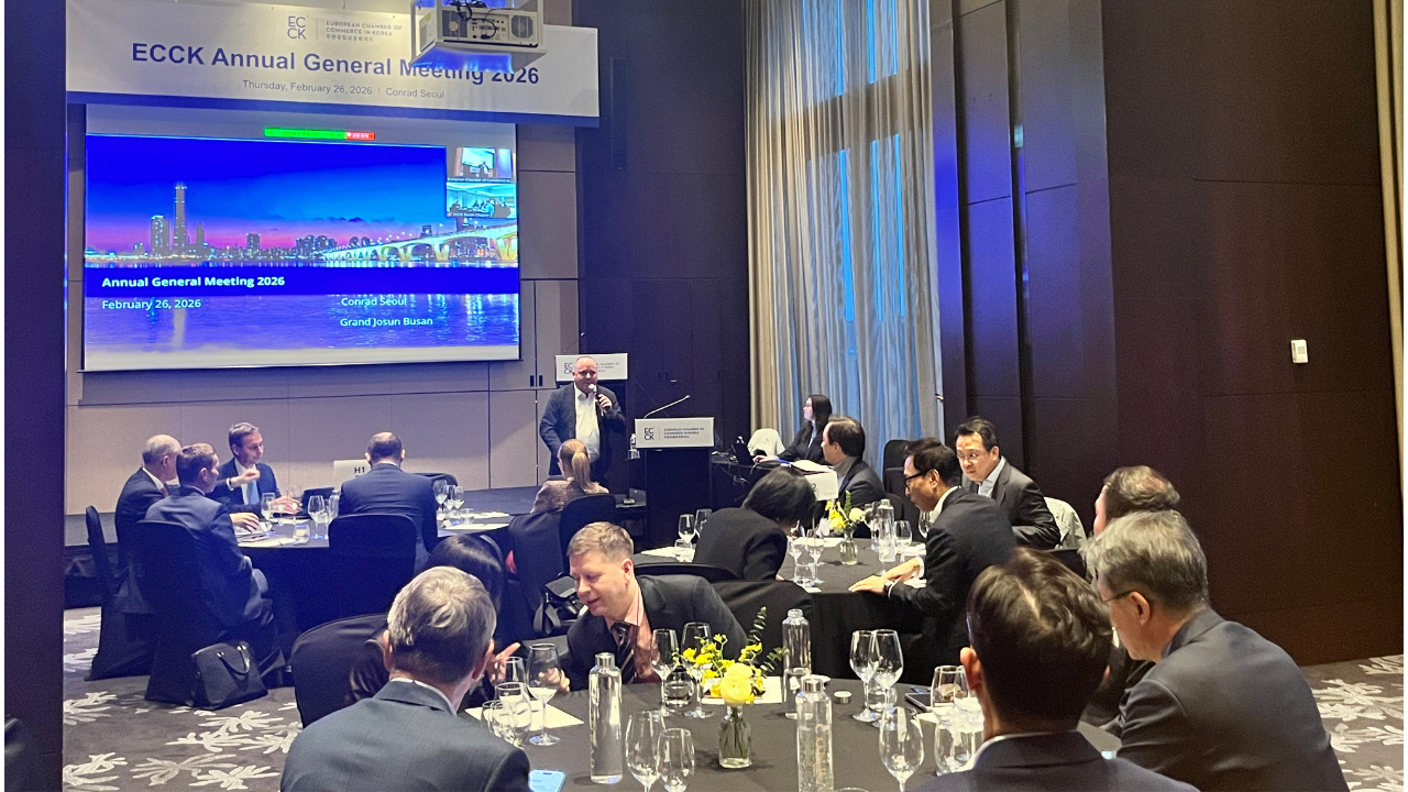 The European Chamber of Commerce in Korea (ECCK) successfully held its Annual General Meeting (AGM) 2026 on Thursday, February 26 at Conrad Seoul, bringing together around 40 members and stakeholders in Seoul, with an additional 10 participants joining from Busan at Grand Josun Busan via live streaming.