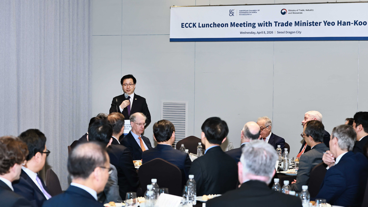 On 8 April, the European Chamber of Commerce in Korea (ECCK) hosted a Luncheon Meeting with Trade Minister Yeo Han-koo, bringing together senior representatives from ECCK member companies as well as H.E. Ambassador Ugo Astuto from the Delegation of the European Union to the Republic of Korea.