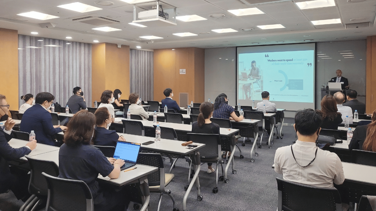 On July 11, the ECCK hosted a HR & Compliance Forum on “Resetting Normal: Defining the New Era of Work”. During the session, an expert speaker, Mr. Bryan Luro, a Country Manager at Adecco Korea, shared his insights on hybrid working model beyond to Adecco’s recent research on “2021 Resetting Normal”. In addition, Mr. Anthony Chang, a senior foreign attorney at Shin & Kim, led the Q&A and open discussion session as a moderator.
