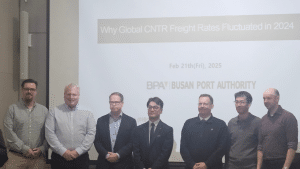 Director Eung-hyuk Lee from the BPA’s International Logistics Department delivered a detailed analysis of recent freight rate fluctuations, examining their underlying causes—global trade disruptions, rising import demand, and port congestion—and their broader impact on freight costs. He also outlined Busan Port’s expansion plans, emphasizing projects such as the full automation of new terminals to enhance efficiency and competitiveness. Discussions further explored BPA’s clean fuel storage strategy and port digitalization efforts, highlighting their role in driving sustainability, operational efficiency, and technological innovation within the maritime sector.