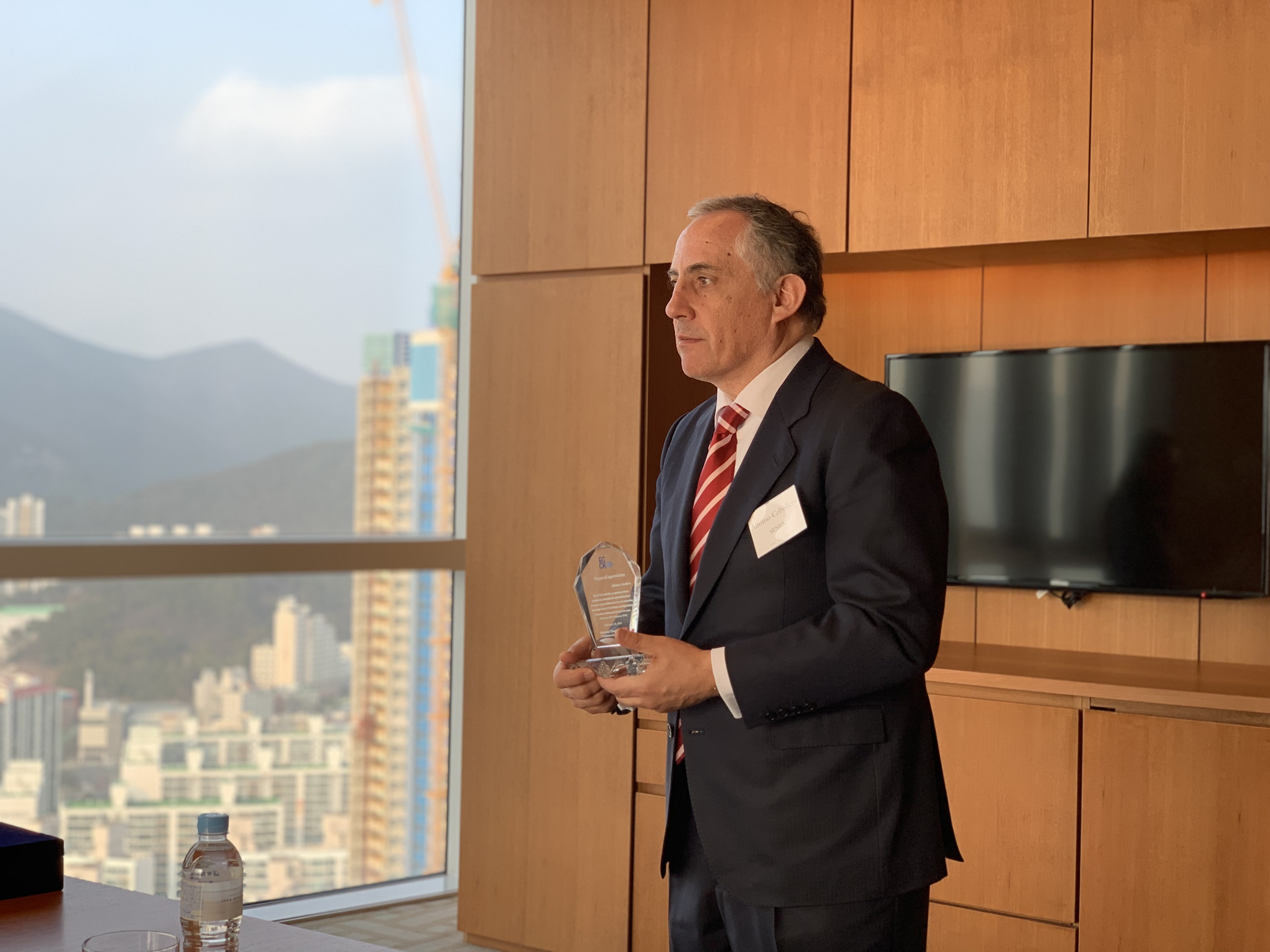 The ECCK delivered a plaque of appreciation to Alfonso Cebollero, former committee Chairperson from SENER Korea, for his dedicated services for two years. Also, the ECCK welcomed Youngkyu Ju from Shell Korea as new Chairperson and Jin-Baek Kim from CEJN Korea as Vice Chairperson.