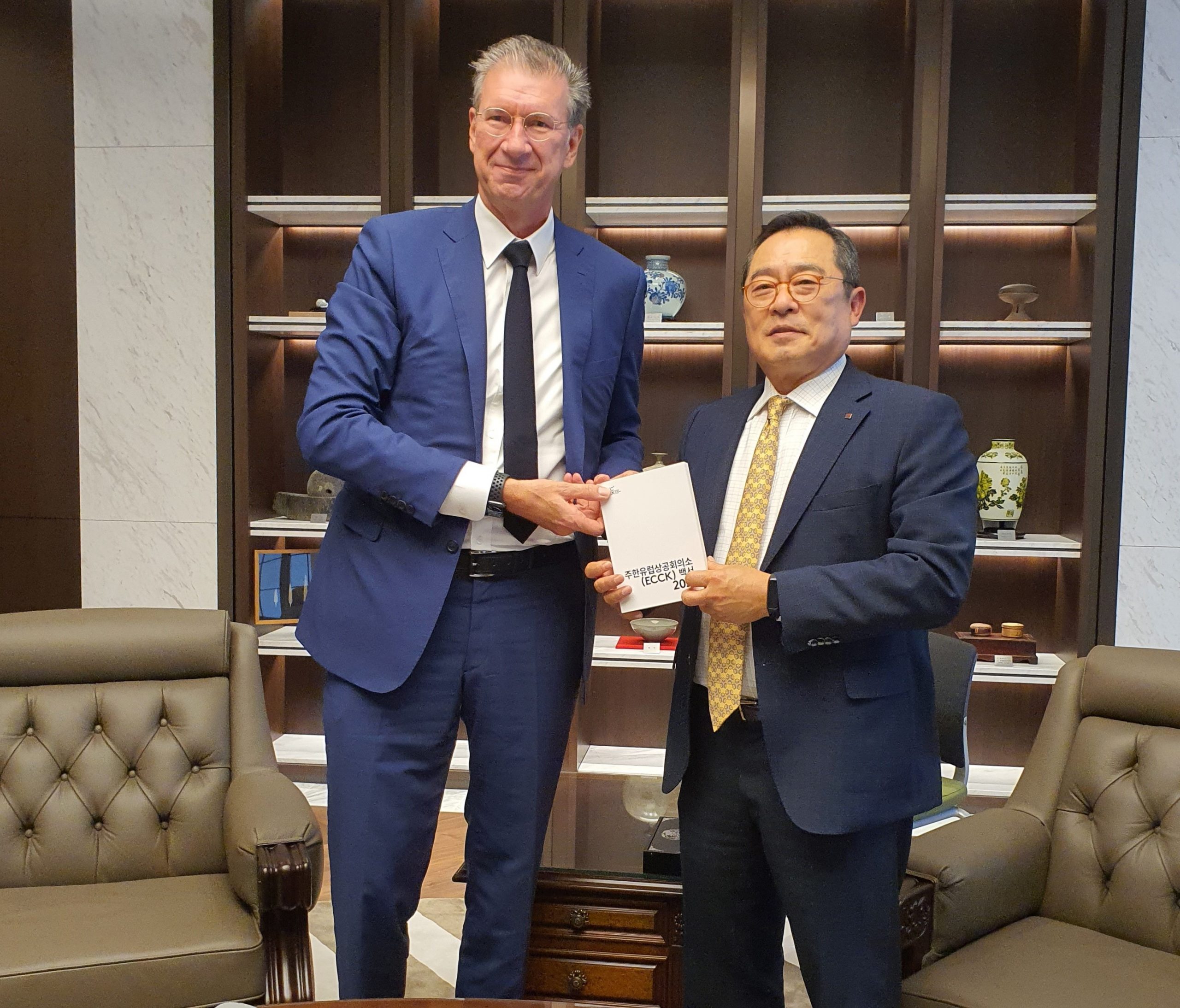 On September 8, ECCK Chairperson Dirk Lukat paid a courtesy visit to KITA (Korea International Trade Association) Chairman Christopher Koo who is also Chairman of LS Group.