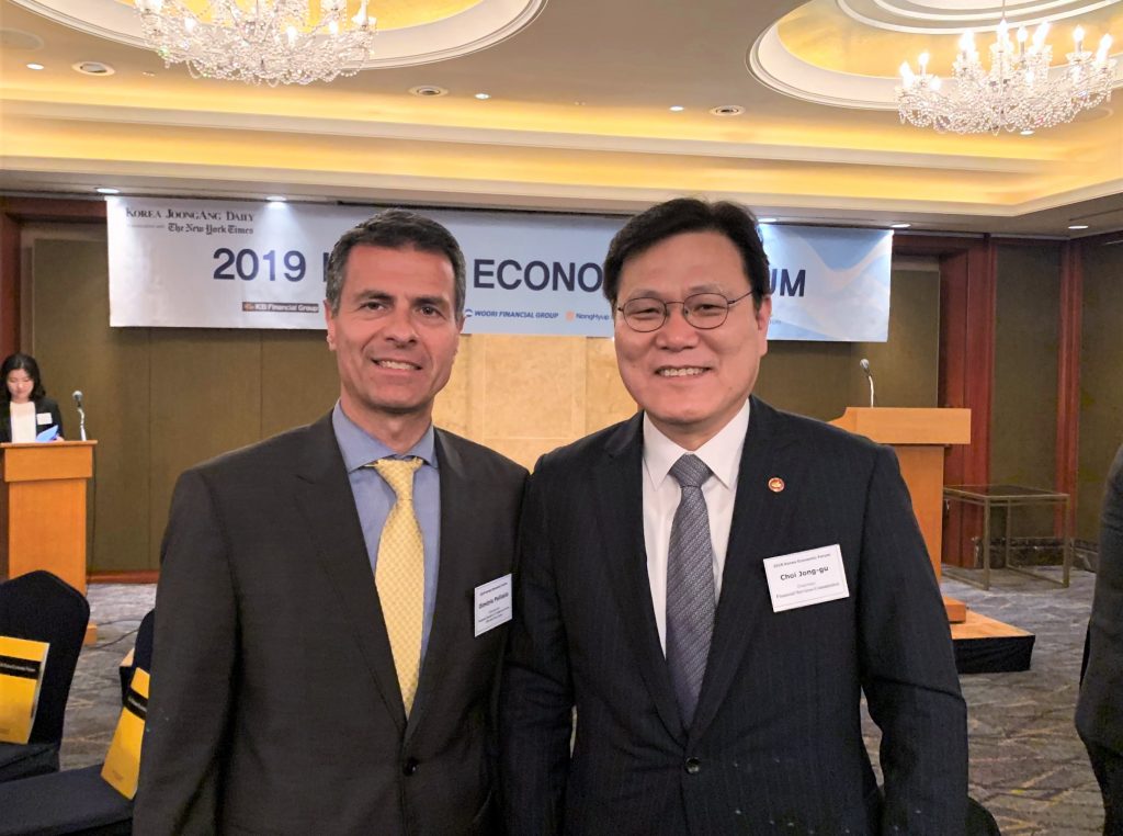 On May 27, the ECCK participated in the 2019 Korea Economic Forum organized by the Korea Joongang Daily. As part of the event, Chairman Choi Jong-ku of Financial Services Commission (FSC) delivered a keynote speech on the topic of ‘The Future of Korea’s Financial Industry in a Changing Global Economic Environment.’ Representatives from the ECCK including Chairperson Dimitris Psillakis met and discussed with FSC Chairman Choi to learn more about the current developments in the Korean economy and future outlook of the Korean financial industry.
